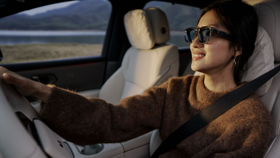 更有意思的是车机联动。当佩戴眼镜上车时,轻触眼镜触控板即可完成与车机连接,后续上车自动连接,连接后如果你使用的是墨镜款,既能清晰查看HUD信息,又能通过Face ID快速解锁。