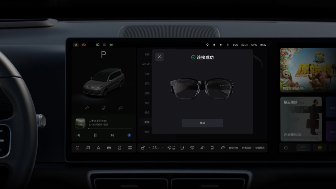 当然,作为车企跨界的产品,这款AI眼镜还能支持与理想汽车进行车机互联,不在车里,不掏手机也能实现控车功能,甚至在里面内置了一个“理想同学”。